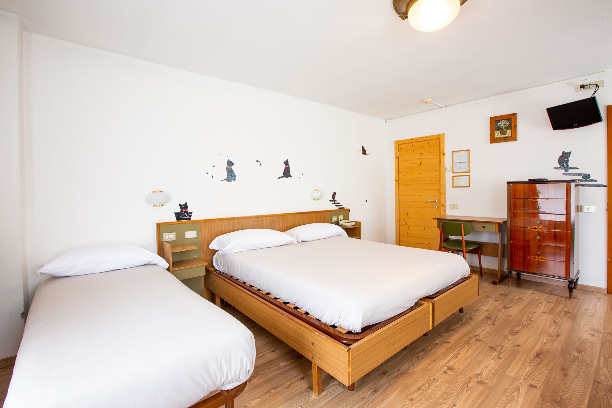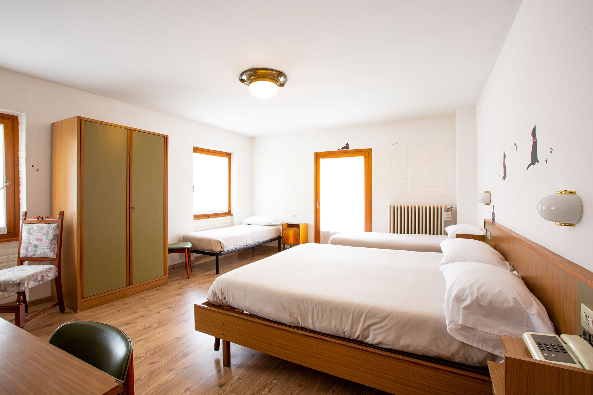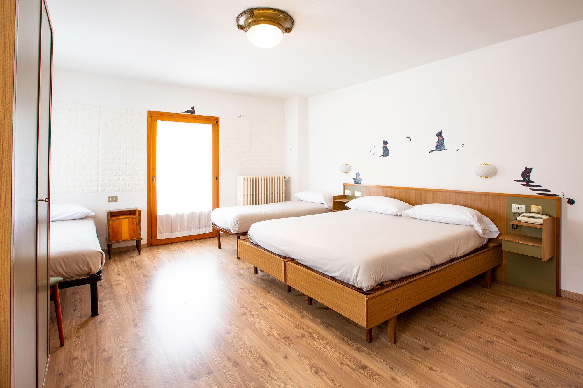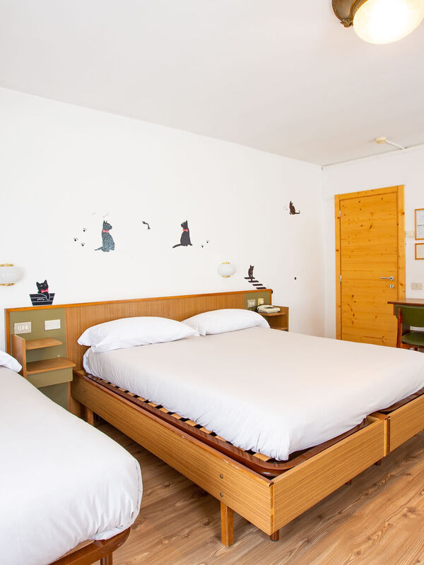 Ideal for families with young or older children and for groups of friends. These rooms are spacious and comfortable. They can have a double bed and two single beds. A large bathroom with all comforts and a balcony complete the package.